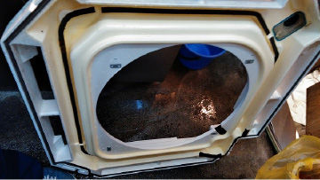 ドレン異常エラーで止まっておりましたので洗浄作業を実施。