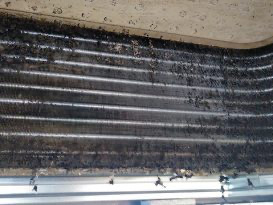 エアコン外観は綺麗に見えましたが、分解すると内部には黒カビ・ほこりが堆積しておりました。